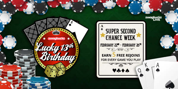 Get 5 more FREE rejoins tonight in Swagbucks LIVE at 8PM ET/5PM PT.