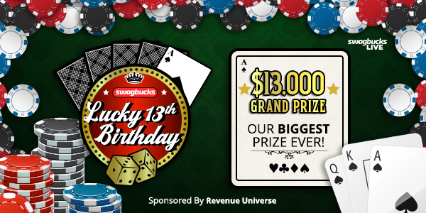 You don't want to miss out on your piece of our BIGGEST GRAND PRIZE EVER: $13,000 (thanks to our friends at Revenue Universe!) + a 7 SB Swag Code for our US and Canadian players. See you at 8PM ET/5PM PT!